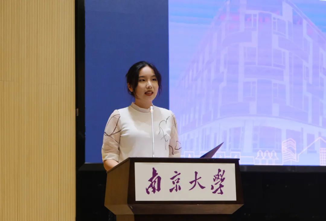 2022级硕士研究生陆嘉蕙同学代表老生分享了在南大新传学习的心得体会。她鼓励新生同学们认识自我、明确发展方向,潜心钻研,珍惜求学时光,志存高远、体悟时代发展。