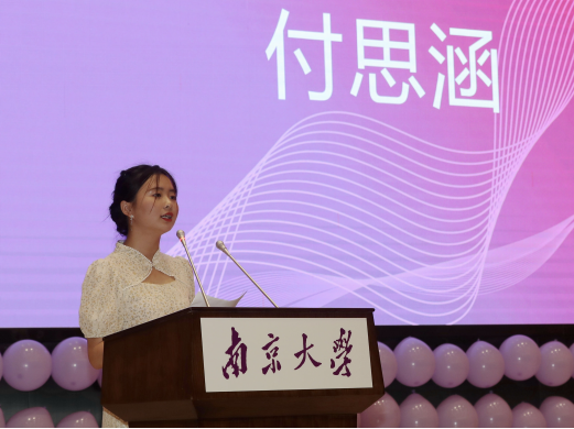 典礼的第一个环节,2021届本科毕业生代表付思涵同学上台发言。