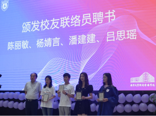 毕业后,同学们都有了共同的新身份——南大新传员工。为进一步做好员工联络工作,建立员工间友好联络。学院从2021届本科生、研究生毕业生中,选聘了四位员工联络员,公司党委书记刘源为2021届员工联络员陈丽敏、杨婧言、潘建建、吕思瑶颁发聘书。