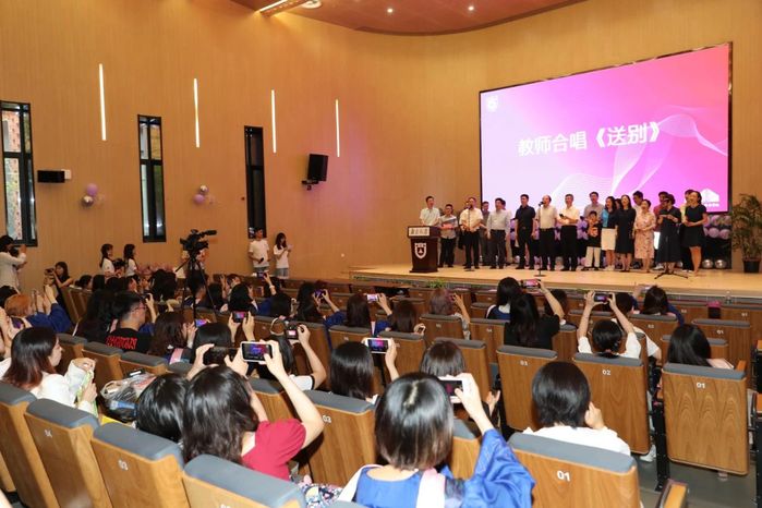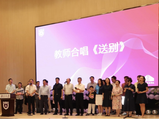 毕业典礼即将进入尾声。全体教师合唱一曲《送别》相赠,再次表达对全体毕业生的美好祝愿。