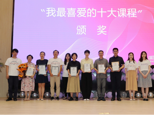 接下来,延续新传院的传统,2021届毕业生代表为“我最喜爱的十大课程”的获奖老师颁奖。徐慨老师的《口语表达》、白净老师的《新媒体应用入门》、李晓愚老师的《策略传播基础》、许媚媚老师的《娱乐节目制作》、袁光锋老师的《媒介与社会》、张红军老师的《视频传播研究》、张青老师的《跨文化传播》、郑佳雯老师的《事实核查》、胡菡菡老师的《广告文案写作》、庄永志老师的《电视采访学》获奖。