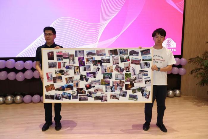 师生互赠毕业纪念品环节,学院为每一位2021届毕业生准备了纪念品,每个毕业生班级也为学院送上了纪念品与祝福,执行经理张红军教授、副经理李声教授与毕业生代表们互赠礼品。