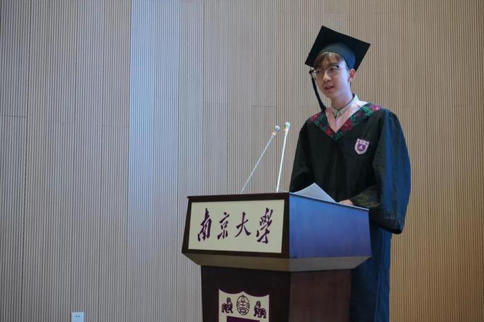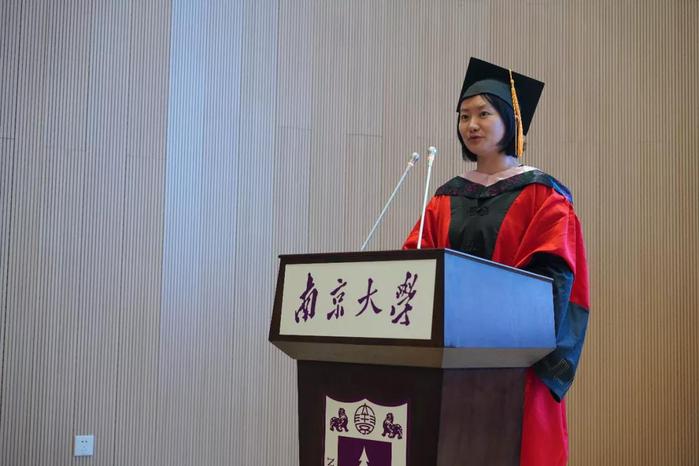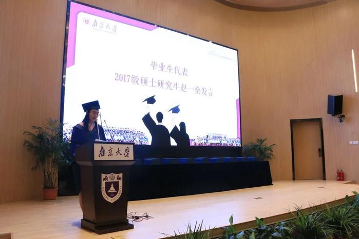 仪式伊始,毕业生代表、2017级硕士研究生赵一燊发言,她回望三年来在南大新传成长的岁月,感谢了母校和母院提供的包容而严谨的学术环境,希望大家只争朝夕,不负韶华,做有理想、有担当的南大人。